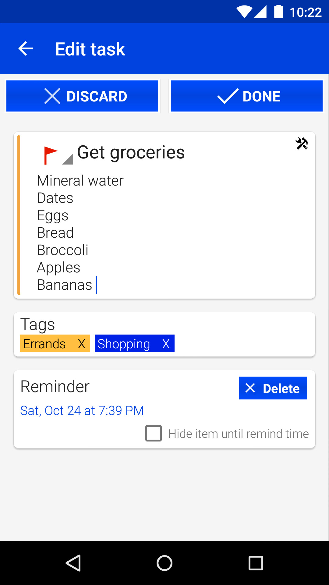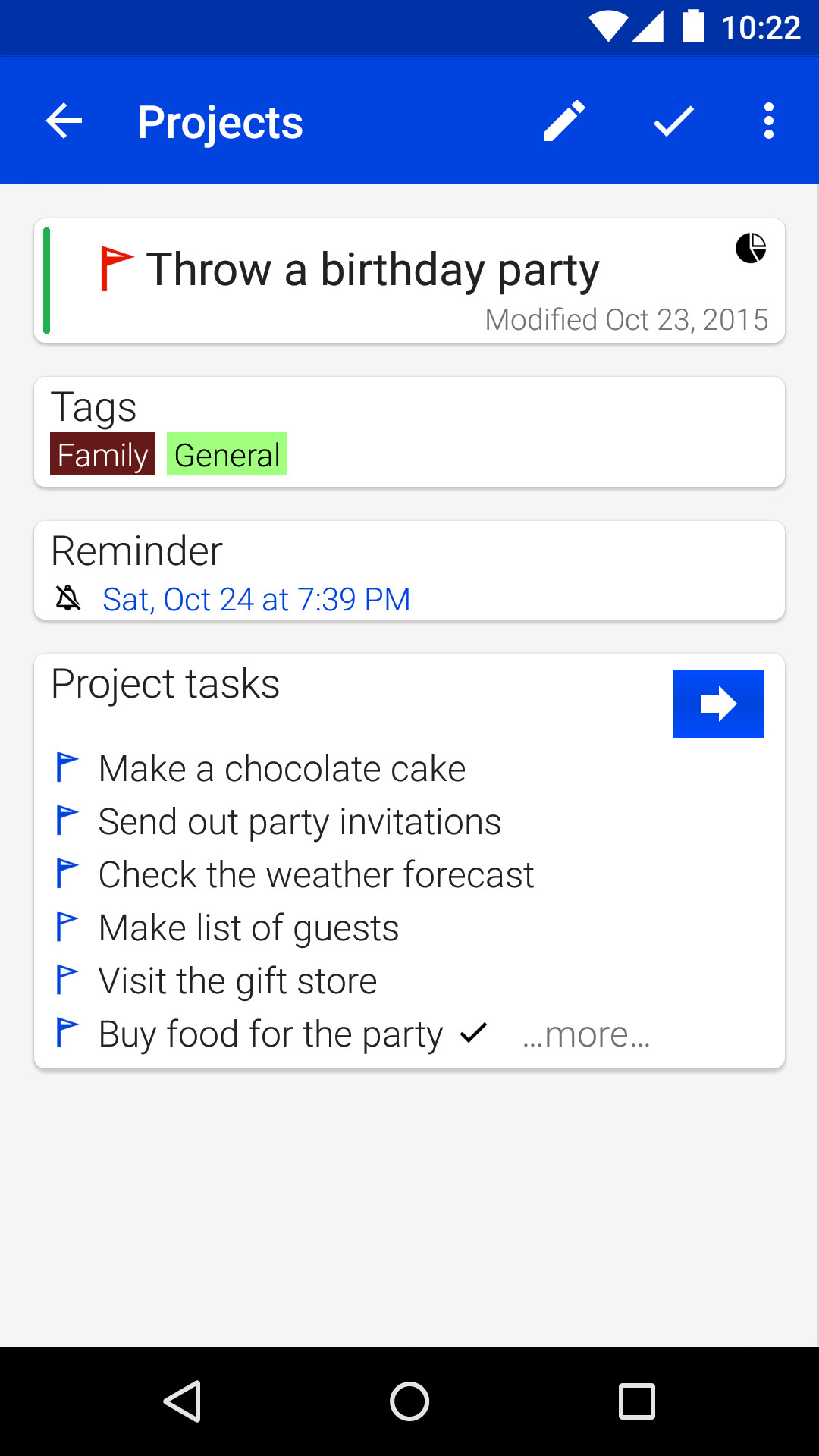Reminders let you know what's important when you need it. Reminders can be set to both tasks and projects.