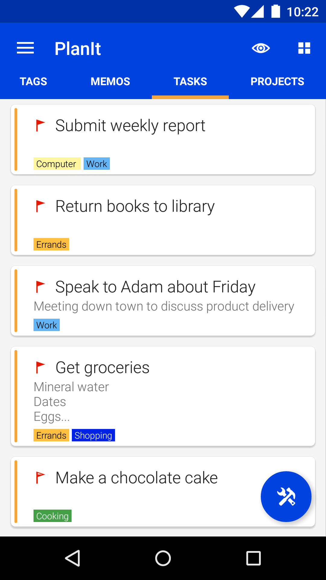 Color-coded tags for memos, tasks and projects allows you to group and visualize related information together.